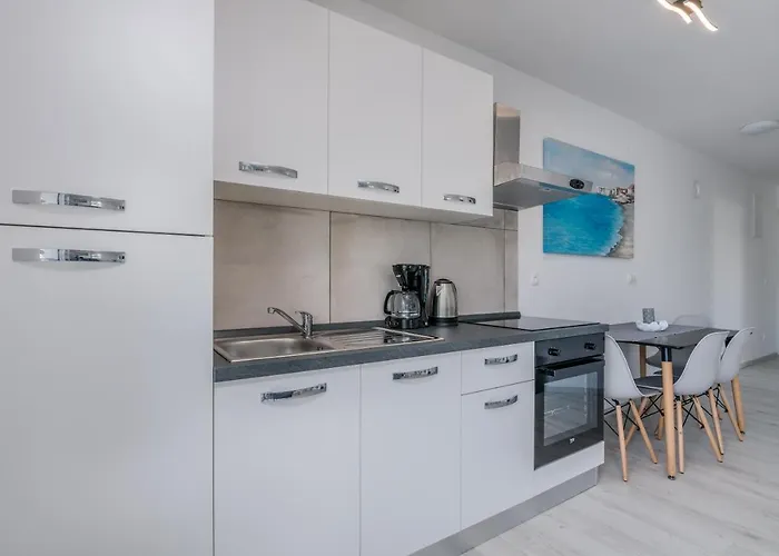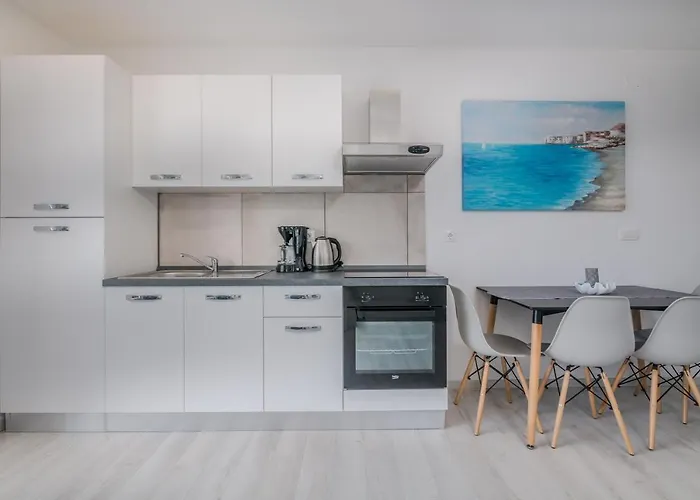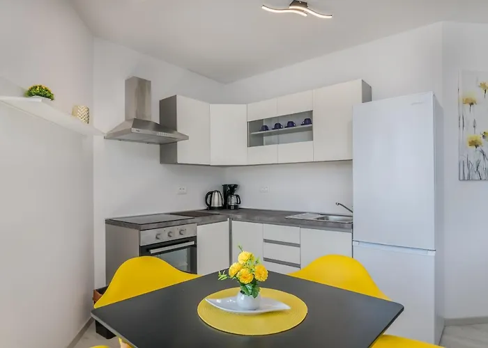 このアパートには台所が備わります この宿泊施設はリエカ空港からわずか30kmほどの距離にあります。